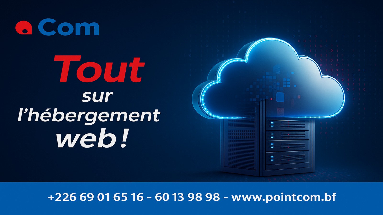 L'hébergement web, ou webhosting en anglais, est un service qui permet de stocker les fichiers d'un site internet (textes, images, vidéos, scripts, etc.) sur un serveur connecté à Internet, afin que ce site soit accessible aux utilisateurs du monde entier, 24h/24 et 7j/7. En d'autres termes, lorsque vous tapez l'adresse d'un site web (comme www.pointcom.bf ) dans votre navigateur, celui-ci envoie une requête au serveur où les fichiers du site sont hébergés. Ce serveur renvoie ensuite les données demandées, que votre navigateur interprète pour afficher le site. L'hébergement web est donc à Internet ce que le terrain est à une maison : un espace indispensable pour que votre site puisse exister et être visité.